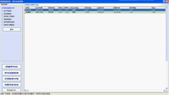 這樣就完成了整個(gè)派車流程,車輛在出門時(shí)間到達(dá)后才能出門,否則不予出行,車輛完成任務(wù)回來后,系統(tǒng)自動(dòng)記錄車輛進(jìn)出時(shí)間,如果超時(shí)晚歸的,則記錄其信息,實(shí)現(xiàn)部隊(duì)車輛派遣信息化管理目標(biāo)。