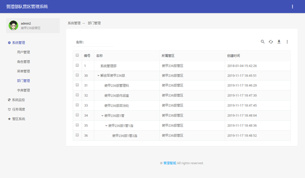 2.  操作員管理模塊;客戶可自由創建不同權限的管理人員營區士兵出入管理。
